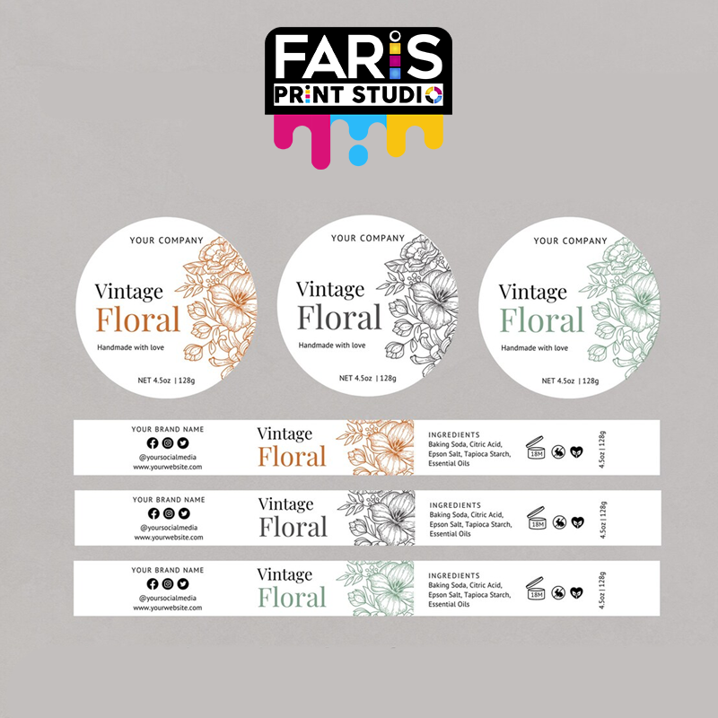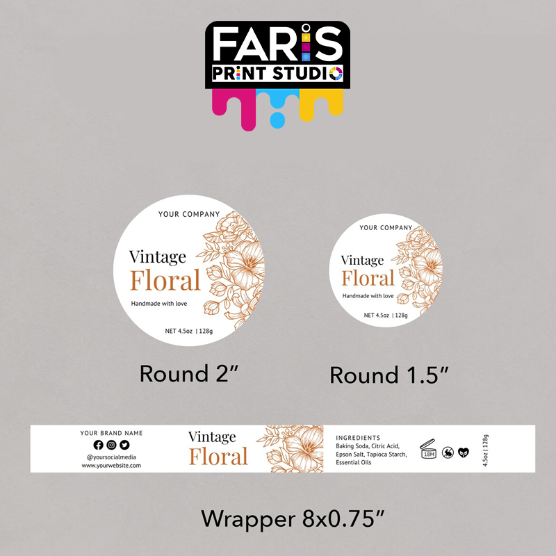 Upgrade your bath bomb packaging with our custom-printed Vintage Floral Belly Band Labels.