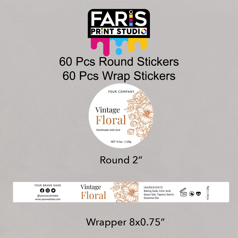 60 Pcs Vintage Floral Bath Bomb Label Template | Belly Band Packaging Design
